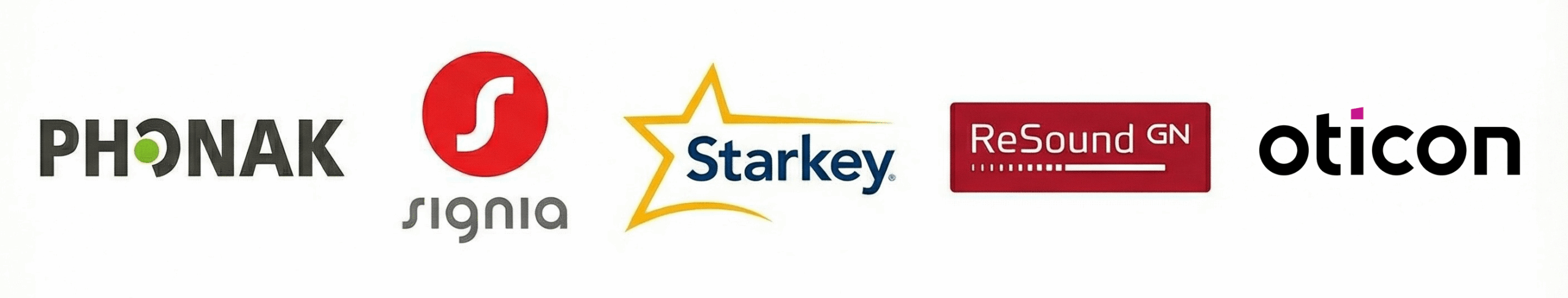 - Phonak, Signia, Starkey, ReSound, and Oticon